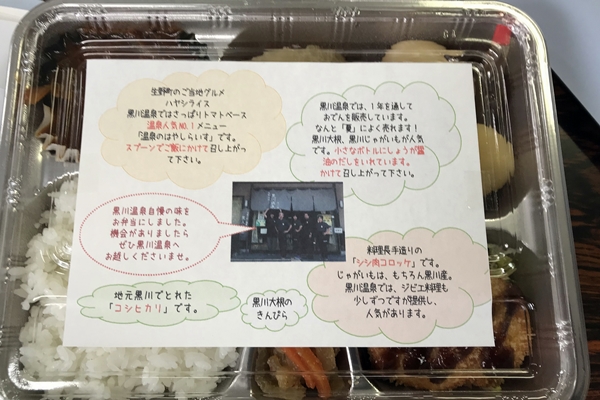 ちょうど、お昼時にさしかかる時間でしたので、黒川温泉さまに特別に作っていただいたお弁当を味わっていただきました。