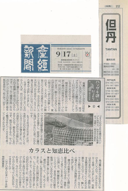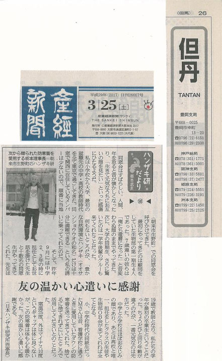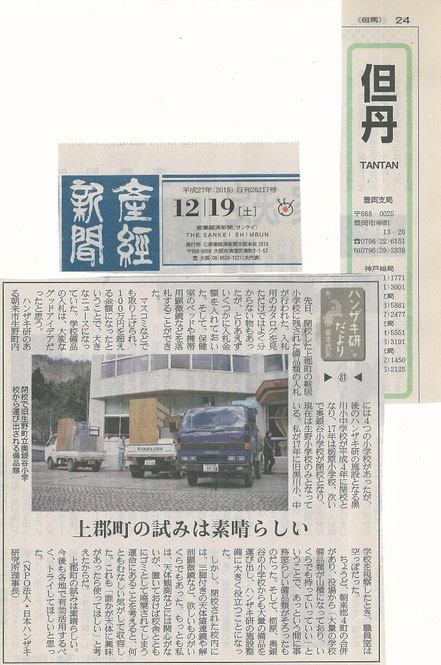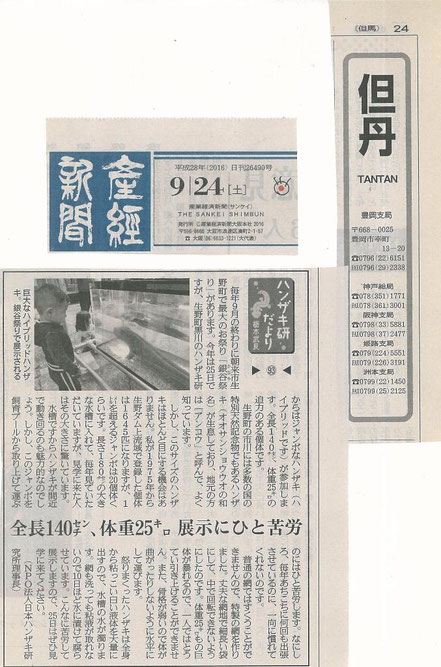 記事は栃本所長のスクラップをそのままスキャンしたものですので、しわや傾きなどがありますが、ご了承ください。同じ内容のものが「播州版」に7~10日遅れで掲載され、カラーで載ったものなどは重複してUPしているものがあります。なお、掲載については産業経済新聞社からの許可を受けております。